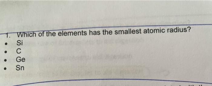 Solved 1 Which Of The Elements Has The Smallest Atomic Chegg Com